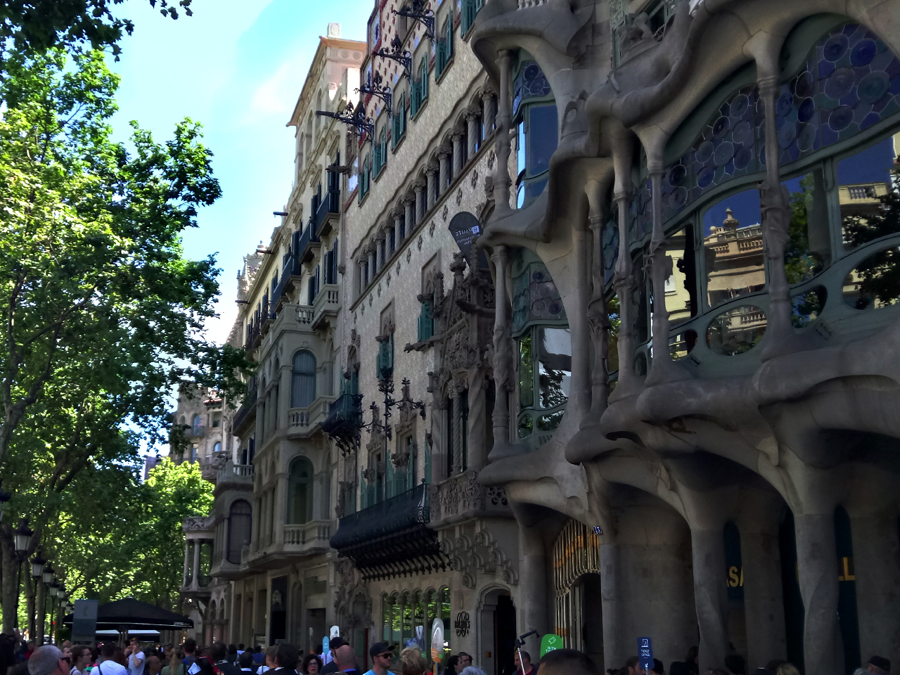 Casa Amatller, together with the adjacent Casa Batlló, designed by Gaudí, and the Casa Lleó Morera, by Domènech i Montaner, is part of the “mansana de la discòrdia” or block of discord of Barcelona, so-named because it features buildings in sharply contrasting styles. Curiously, none of these houses was newly built; all three of them are refurbishments of already existing buildings, the Casa Amatller being the first. The original building was constructed by Antoni Robert in 1875, and in 1898 the Amatller family commissioned the Catalan architect and politician Josep Puig i Cadafalch (1867-1956) to refurbish the building. The current building dates from his “rose” or modernista period, which includes buildings such as the Casa Macaya and the Casa de les Punxes, the House of Spikes.