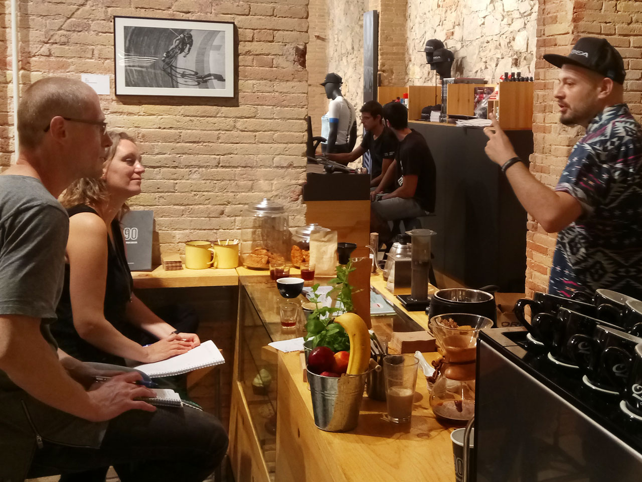 Nito, barista manager at Orbea Cycle Coffee, is today at the final session of coffee training with Ana, the owner of Lilo Cafè, and Andre, the bartender of Lilo, as well as my co-associate in the Taste of Barcelona Tour.